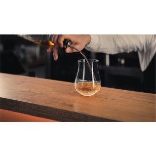 For a tasting, it’s good when you have glasses like these at hand. The upward tapering shape of the massive, bulbous vessels, mouth-blown at the Eisch glassworks in the Bavarian Forest, favours the so-called nosing effect. Additionally, the glass keeps the drinking temperature of the whisky for a long time, because the thick-walled base prevents the heat of the hand from being transferred to the contents.